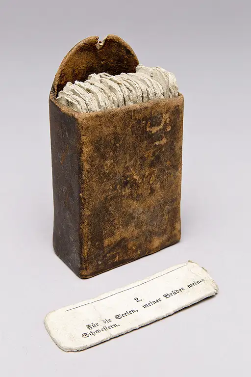 The spiritual playing cards from the Villnößtal bear the playing card colors of the German leaf: acorn, foliage, heart and bells. They were common in the region, so the spiritual cards were designed to resemble ordinary playing cards. They contain tasks and prayers for the believers. Although this form of gambling was not without controversy, the players believed that they were performing a pious service.